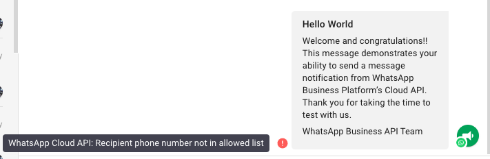 To solve this error, you must refresh your WhatsApp Cloud API channel permissions and send a test message again.