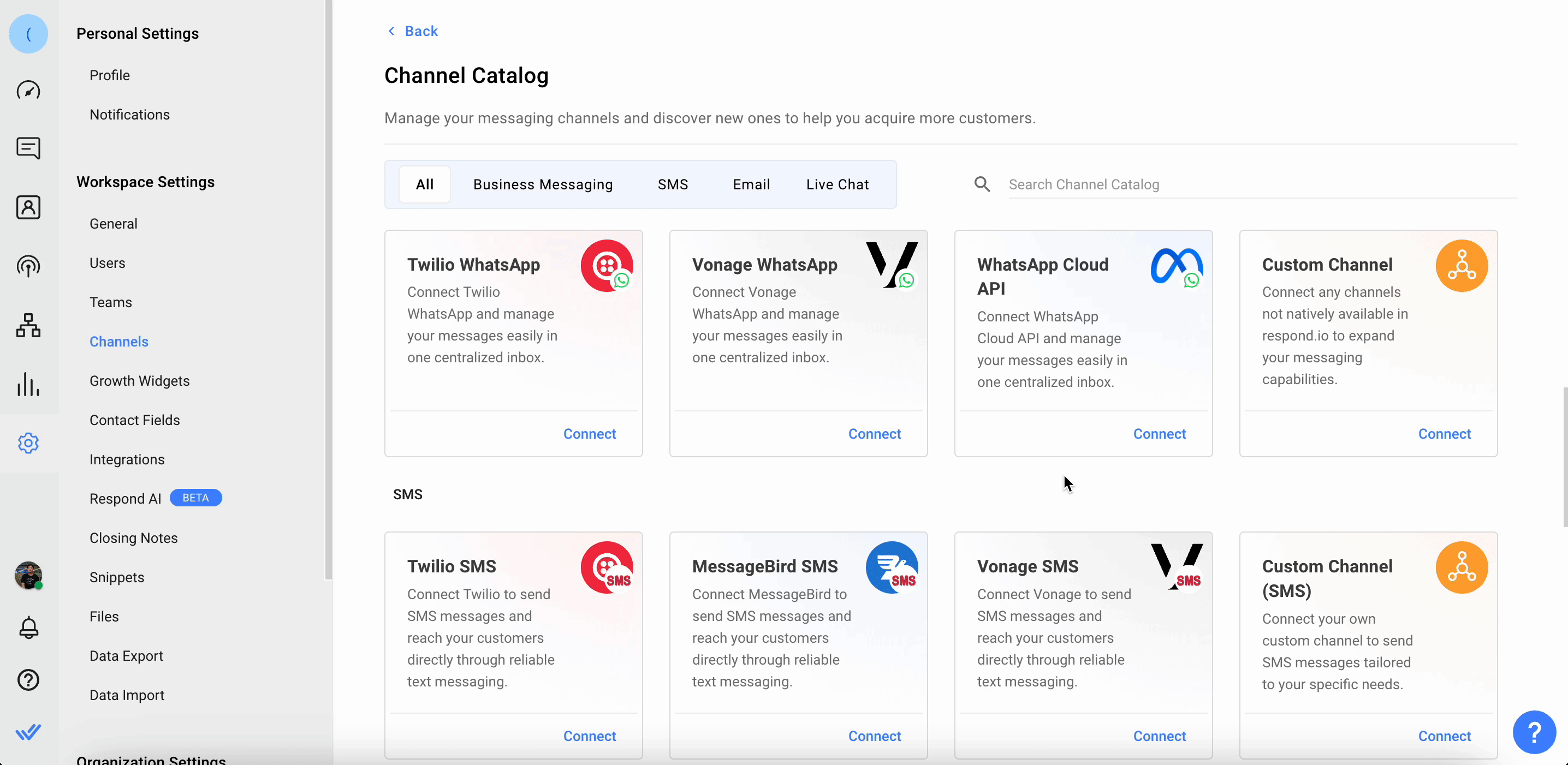 Step 1: Navigate to Workspace Settings > Click Add Channel