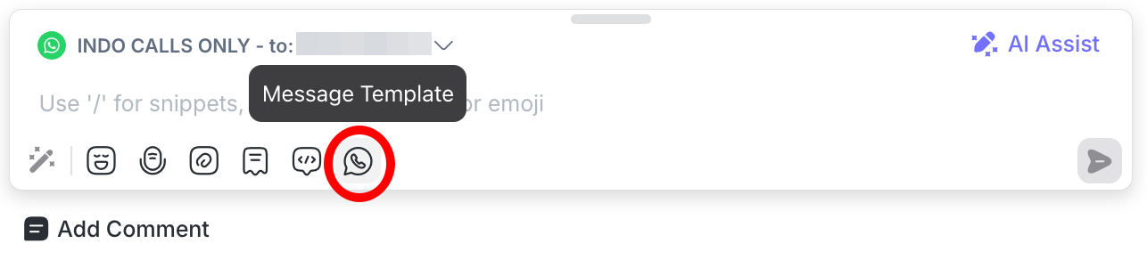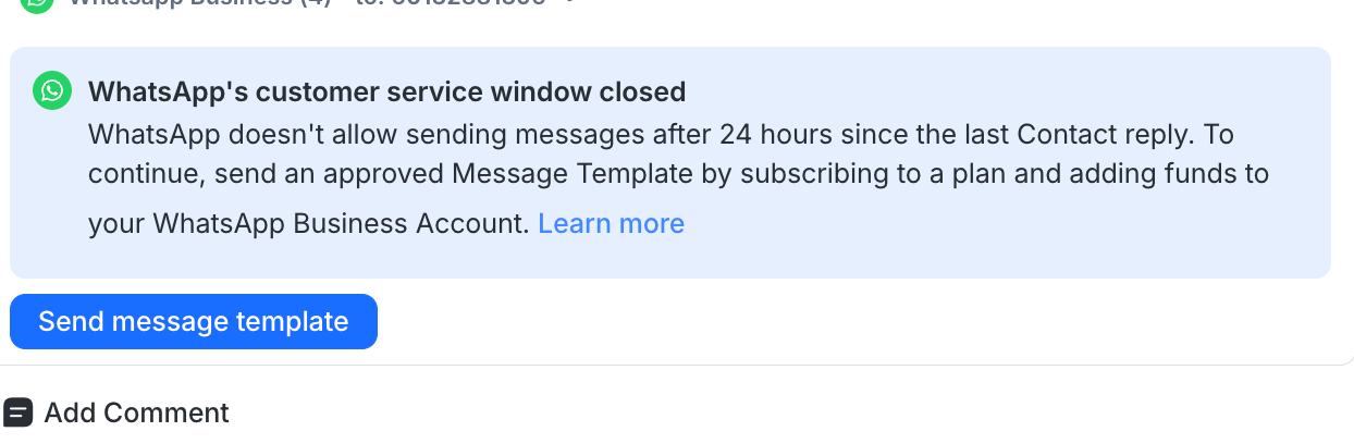To send a Message Template after the customer service window has expired, click the Send Message Template button at the bottom of the Inbox Module.