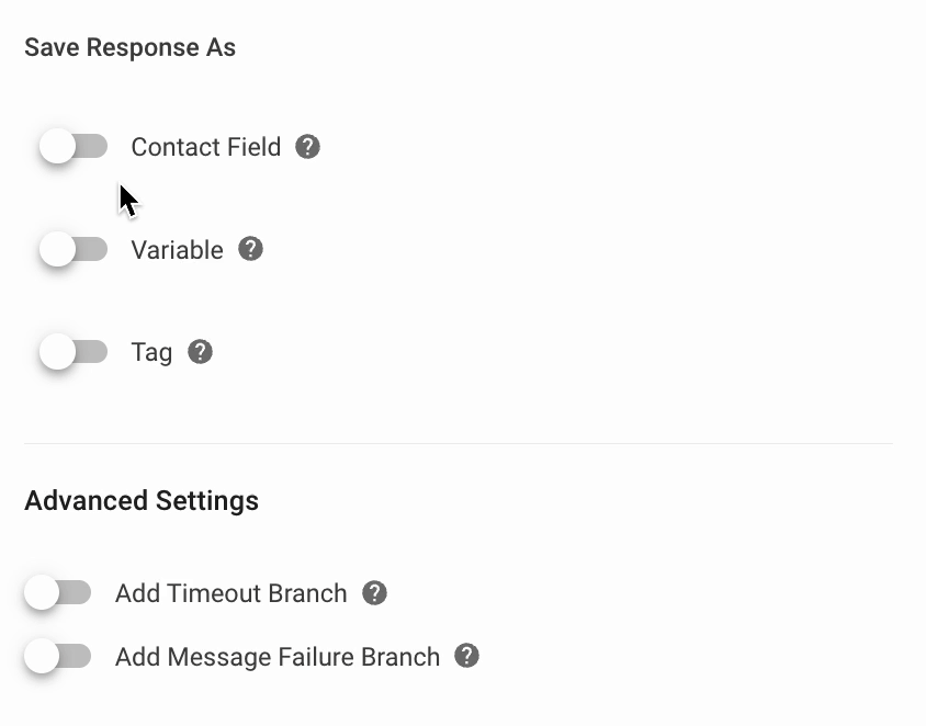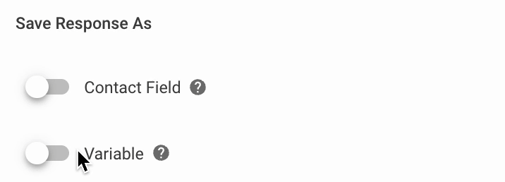 To save the Contact's answer as a Contact Field, simply turn the Contact Field toggle ON and then choose the appropriate Contact Field from the drop-down menu.