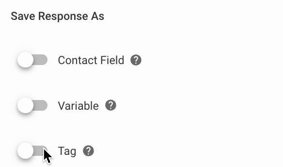 To save the answers the Contact provides as Tags, turn the Tag toggle ON. Please note that this is only applicable for multiple-choice questions.