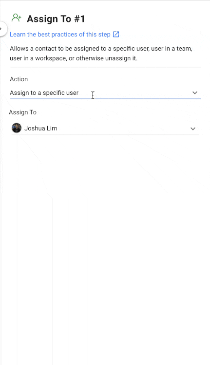 These options are only available for A User in a specific Team and A User in the Workspace assignment options.