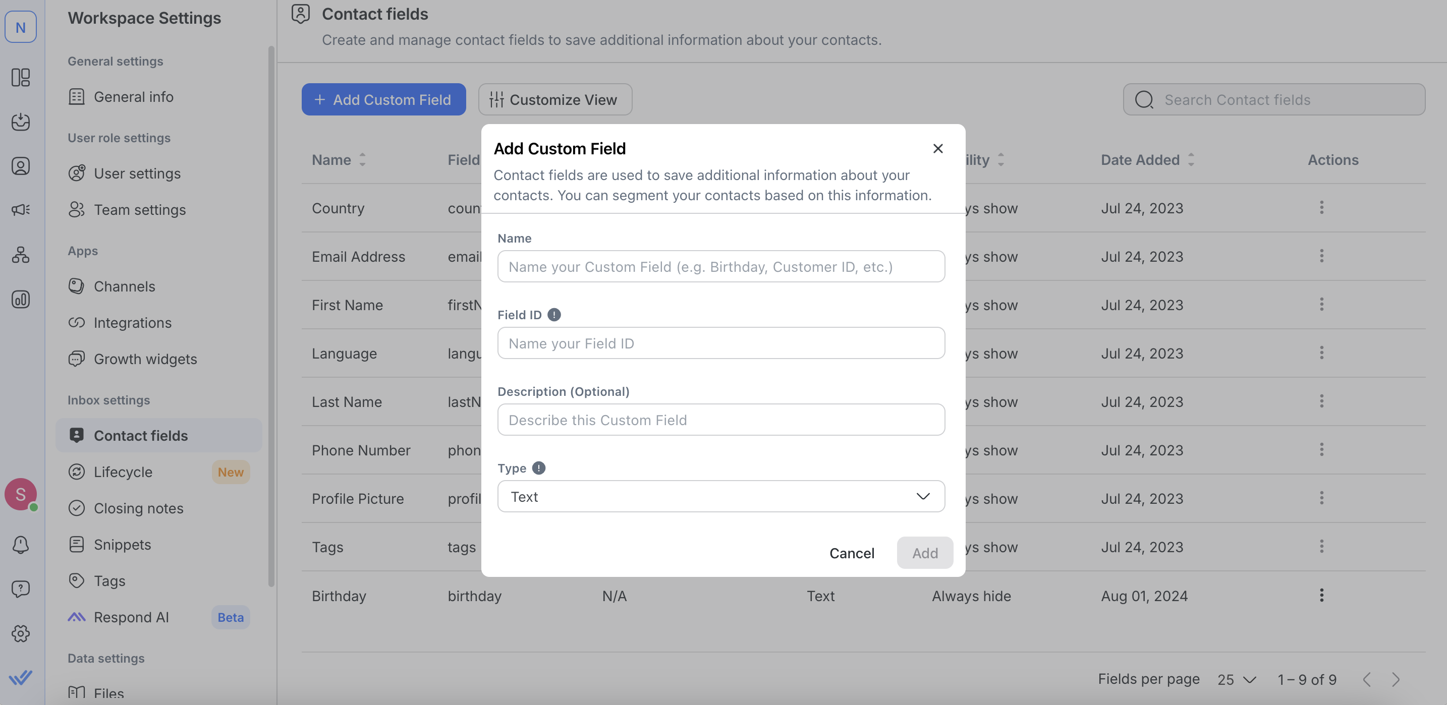 Step 4: Select a field type for your new Custom Field. Be sure to choose an appropriate field type to collect relevant and better information for your Contact.