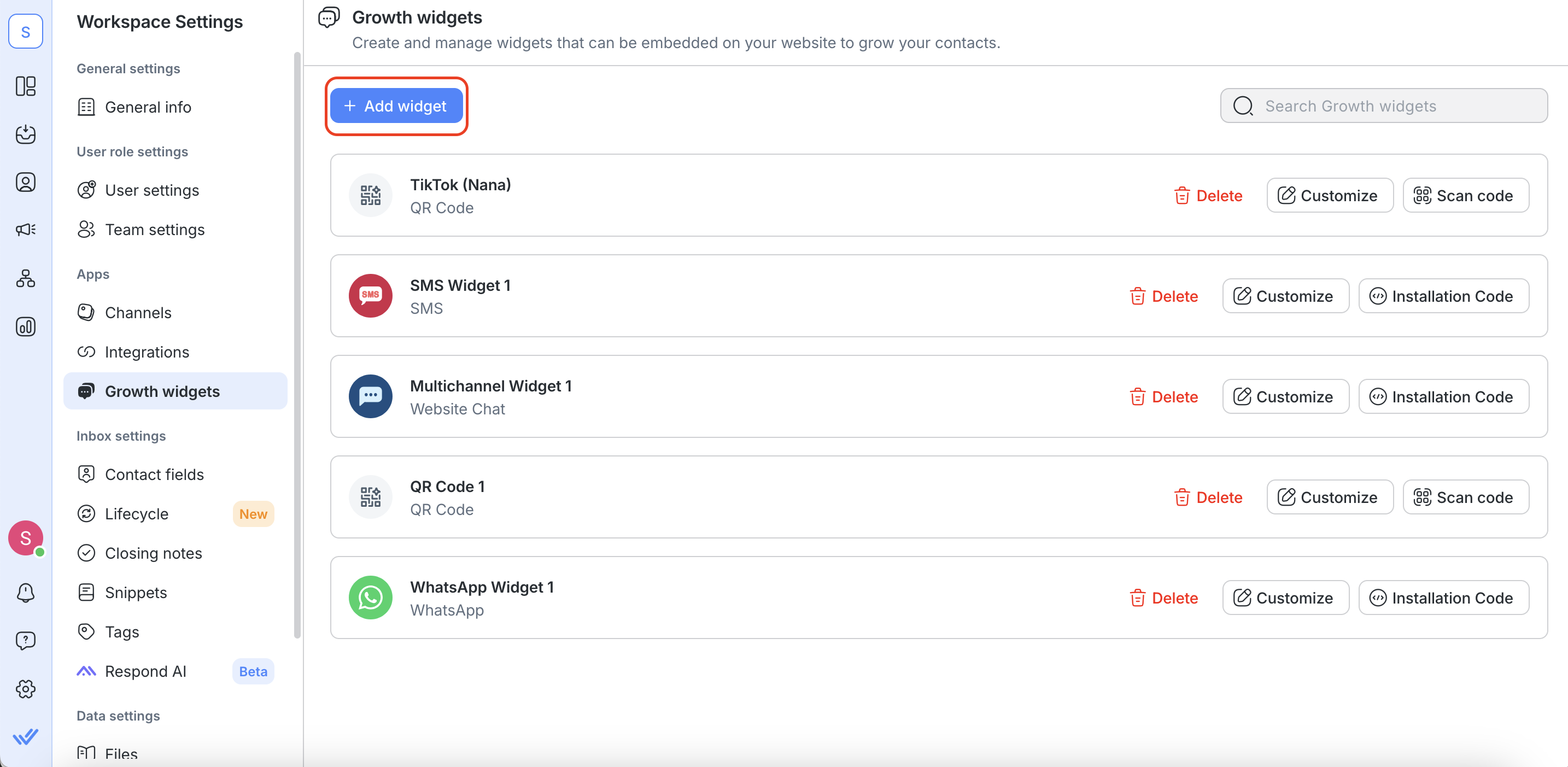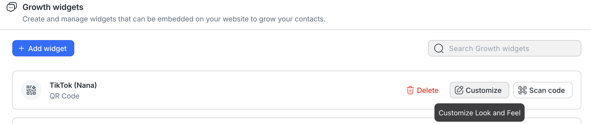 A Growth Widget allows you to embed a single channel or multichannel widget on your website so visitors can connect with you via their preferred messaging apps.