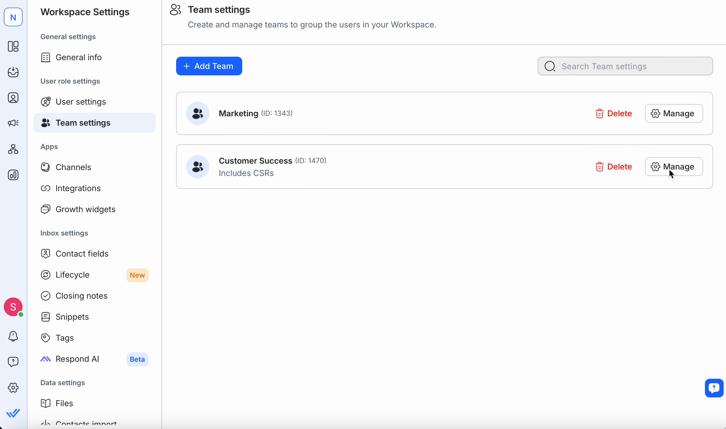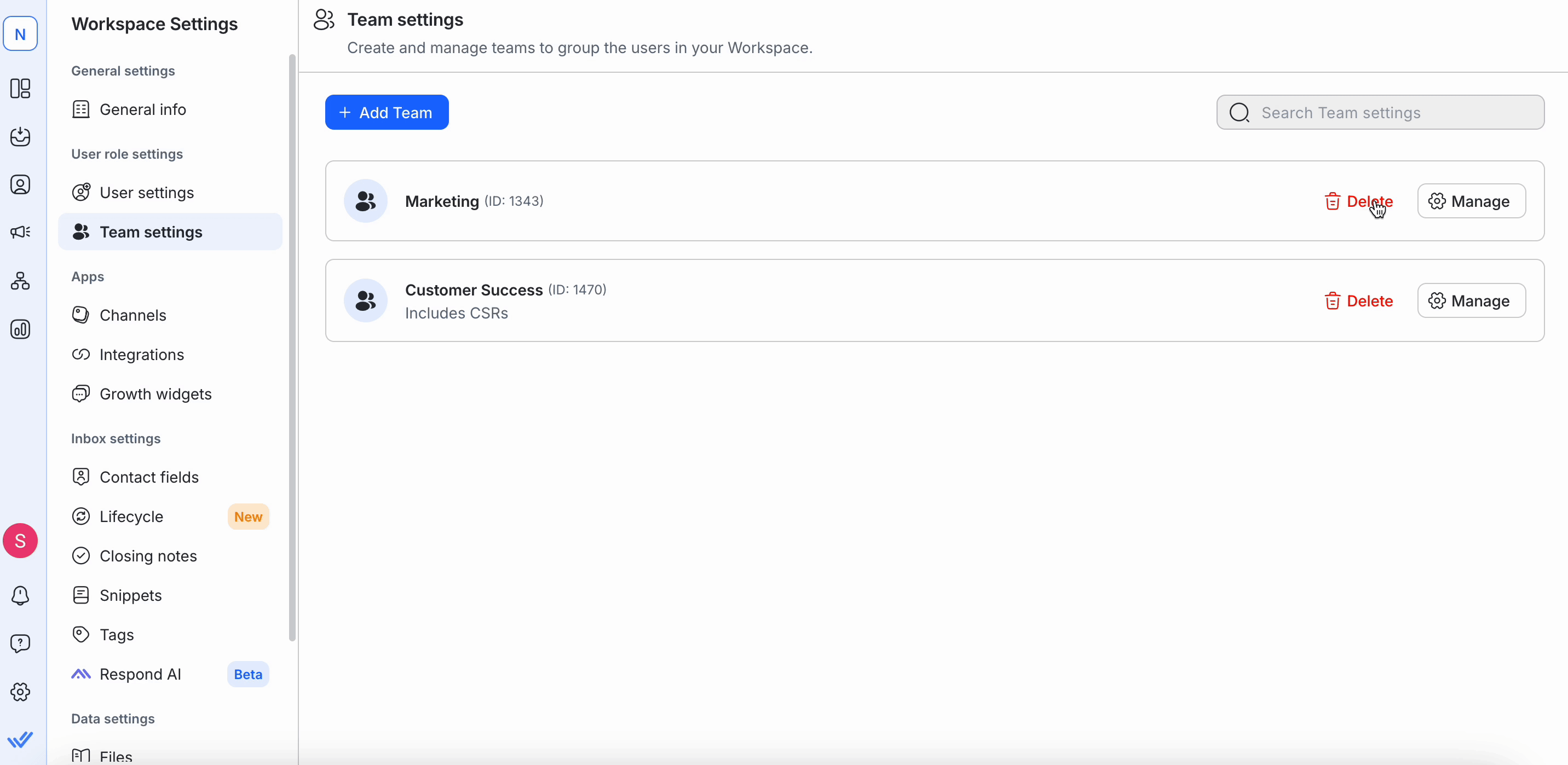 When a Team is no longer in use, you can delete it from the Workspace. Once deleted, it can no longer be used by anyone else.