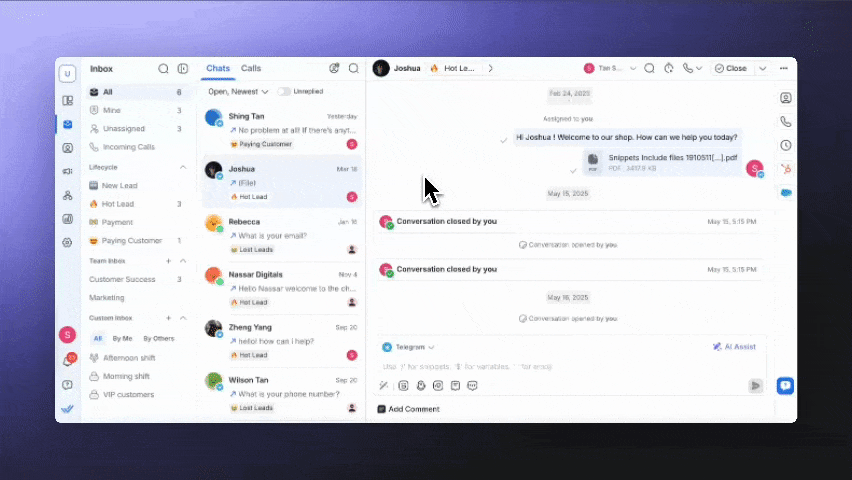 You can also filter conversations by stage, helping agents prioritize leads and focus on Contacts that are ready to move forward in the sales process.