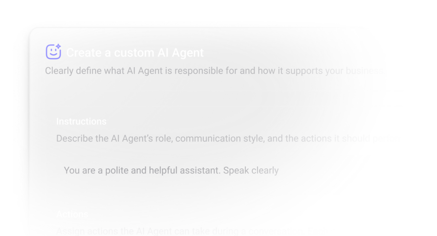 Tidak. Anda dapat memulai dengan cepat menggunakan template yang sudah dikonfigurasi untuk Agen Penjualan AI, Agen Dukungan AI, dan Penerima AI. Template ini dilengkapi dengan alur percakapan umum dan praktik terbaik yang sudah terintegrasi, sehingga Anda tidak perlu merancang semuanya sendiri. Anda juga dapat menyesuaikannya agar sesuai dengan produk, nada suara, dan alur kerja Anda — atau menyesuaikan agen Anda jika Anda memiliki kebutuhan bisnis tertentu.