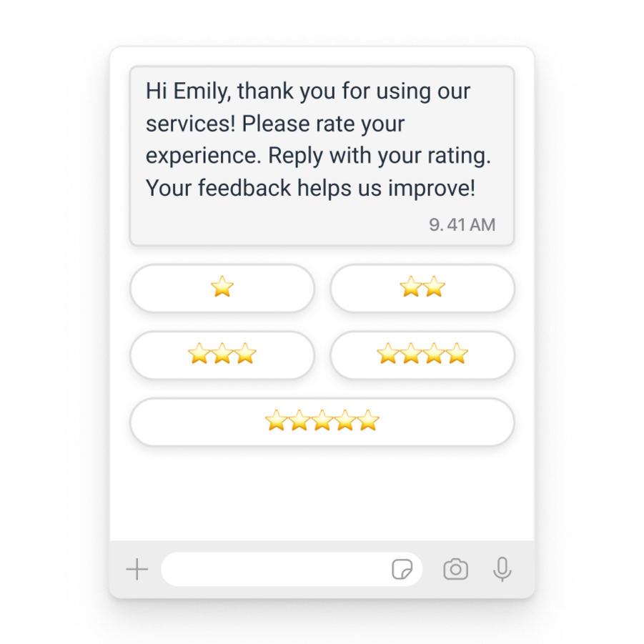 Tingkatkan loyalitas pelanggan dengan siaran bertarget di saluran populer untuk promosi, pembaruan, peningkatan, dan survei CSAT.
