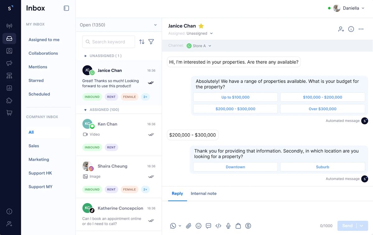 Users like SleekFlow for its multi-channel messaging and commerce-friendly workflows, which make it appealing to retail and social commerce teams. Sentiment also notes that the platform’s automation and reporting capabilities do not match enterprise-level solutions.