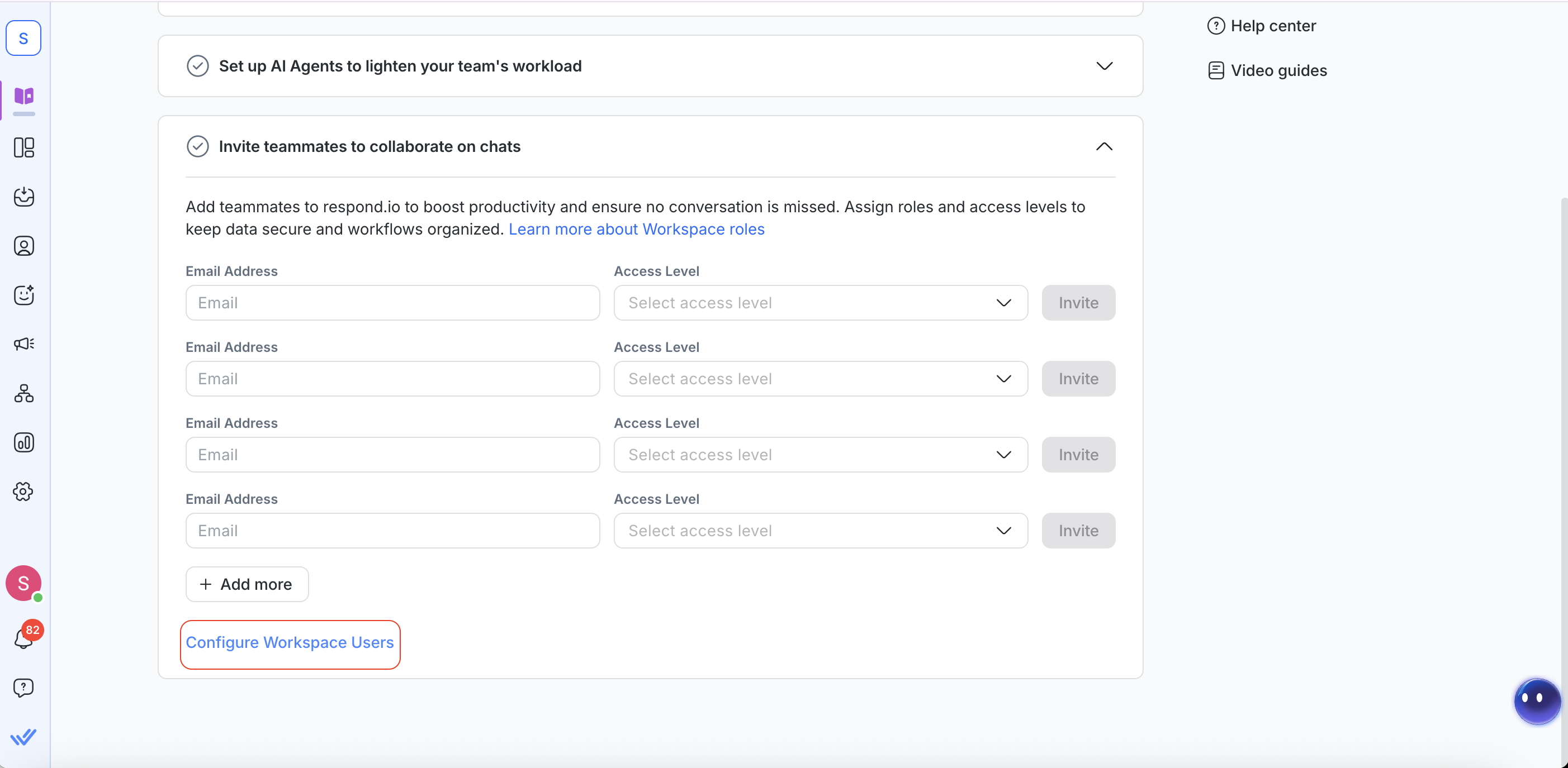 • Access to the respond.io Help Centre