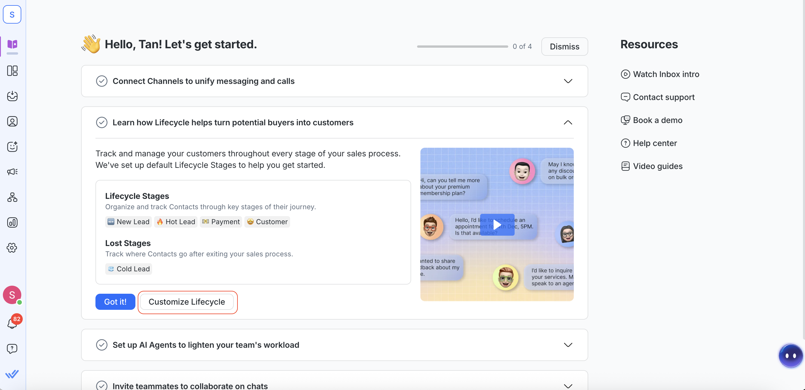 Now that you’ve connected a Channel and set up Lifecycle stages that match your sales funnel, you’re ready to introduce an automation to automate conversations.