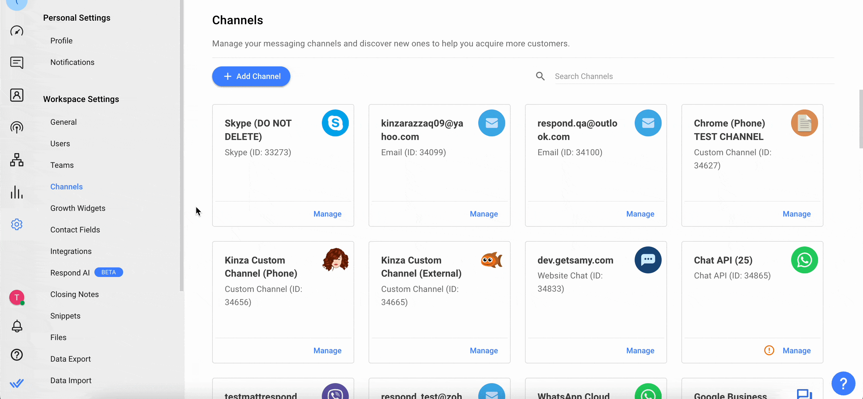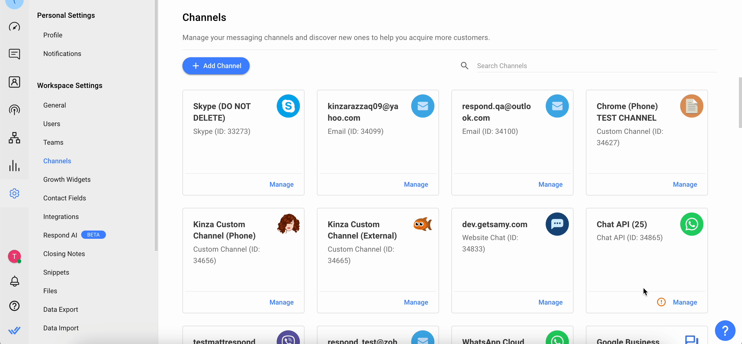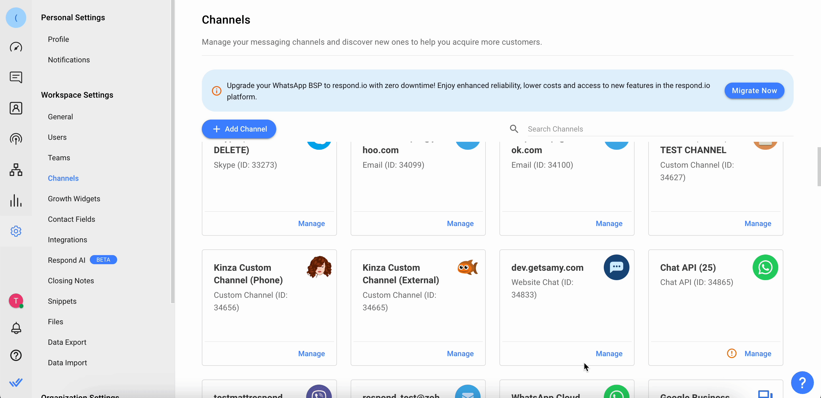 Langkah 1:Di Ruang Kerja Anda, bukaPengaturan>Saluran