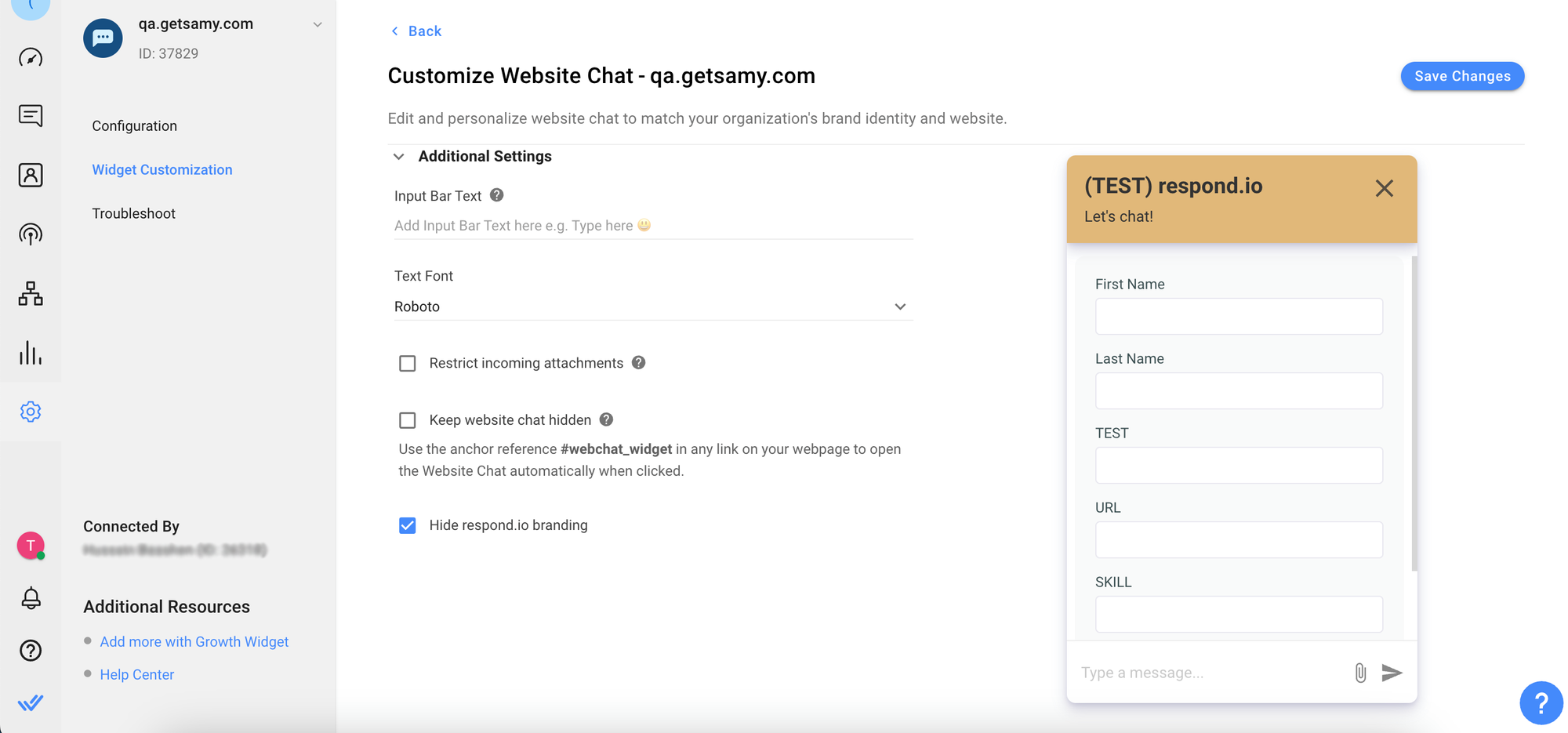 Dengan menggunakan opsi ini Anda dapat menghapus Branding respond.io dari Widget Anda.