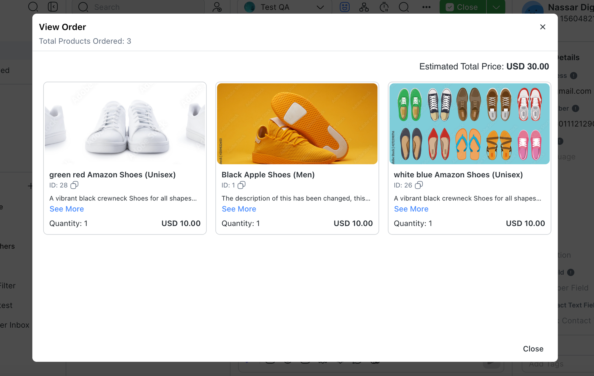 Templat Pesan Produk juga dapat dikirim dalam modul Pesan.