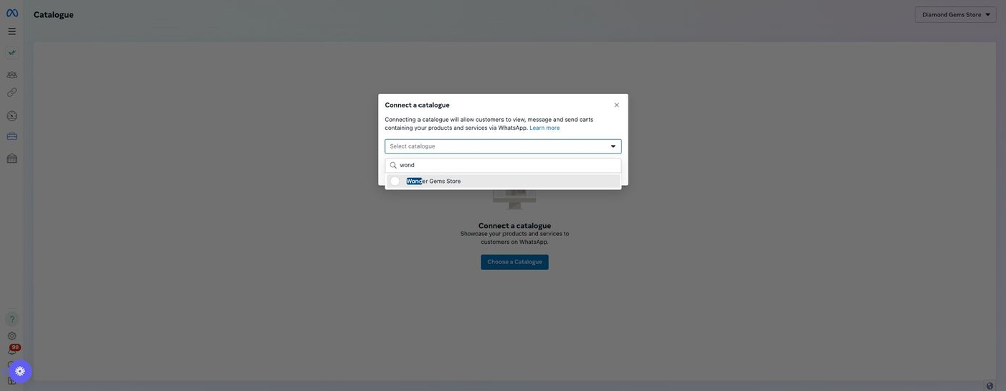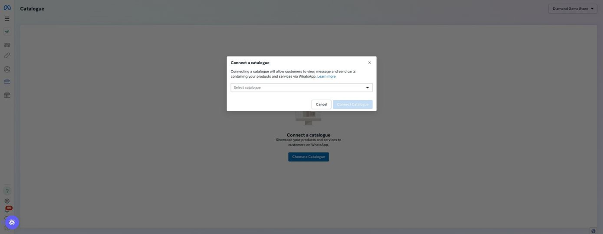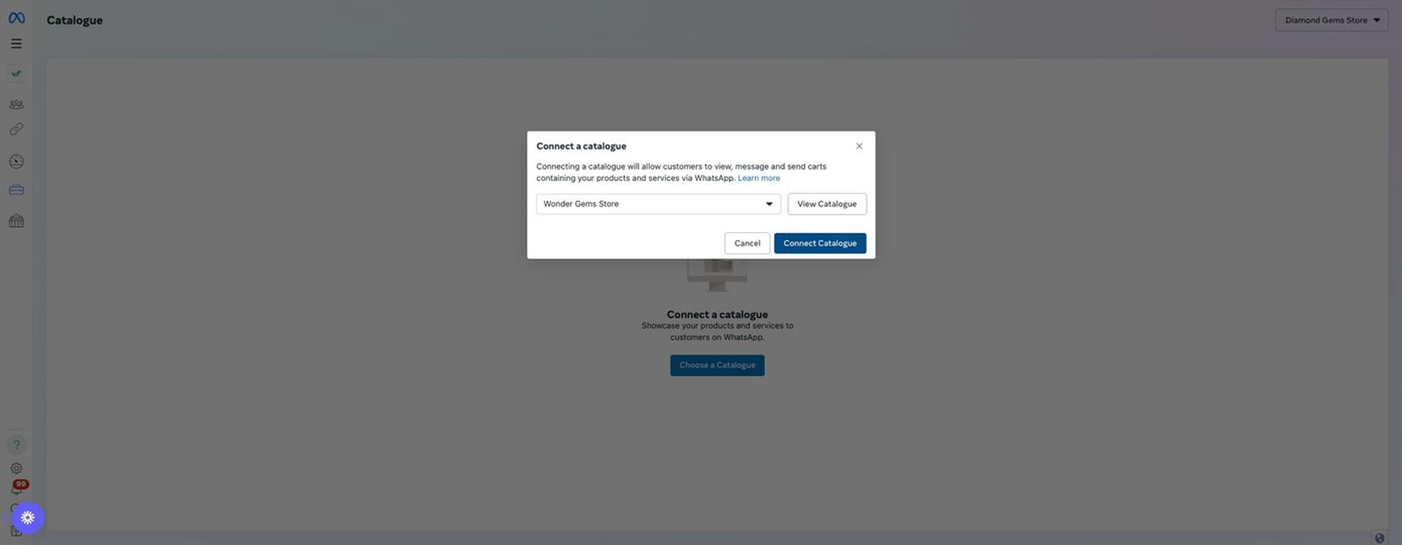 Menghubungkan Katalog ke WABA di WhatsApp Manager di Meta Business Manager