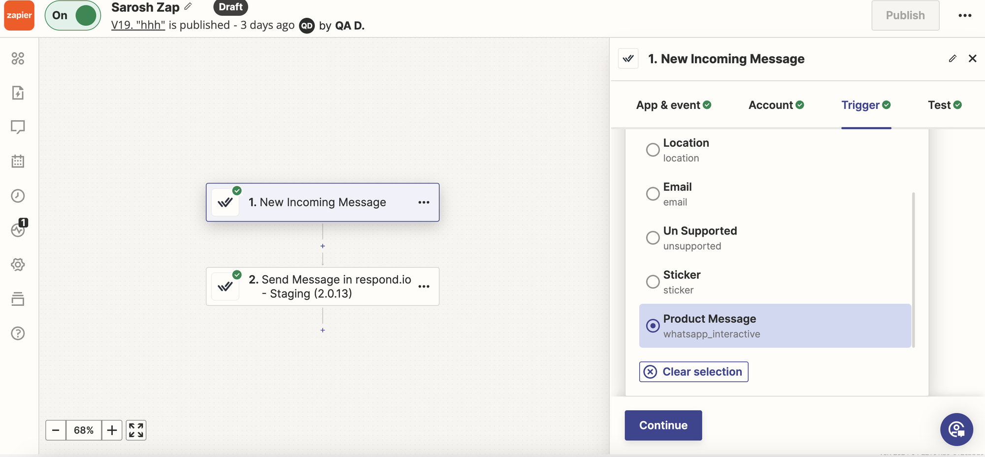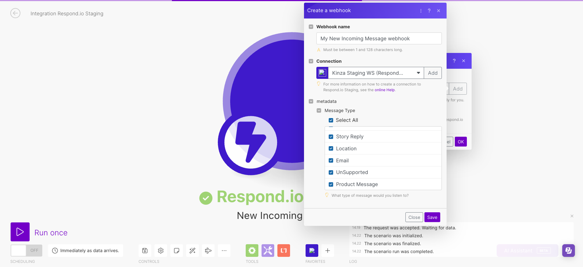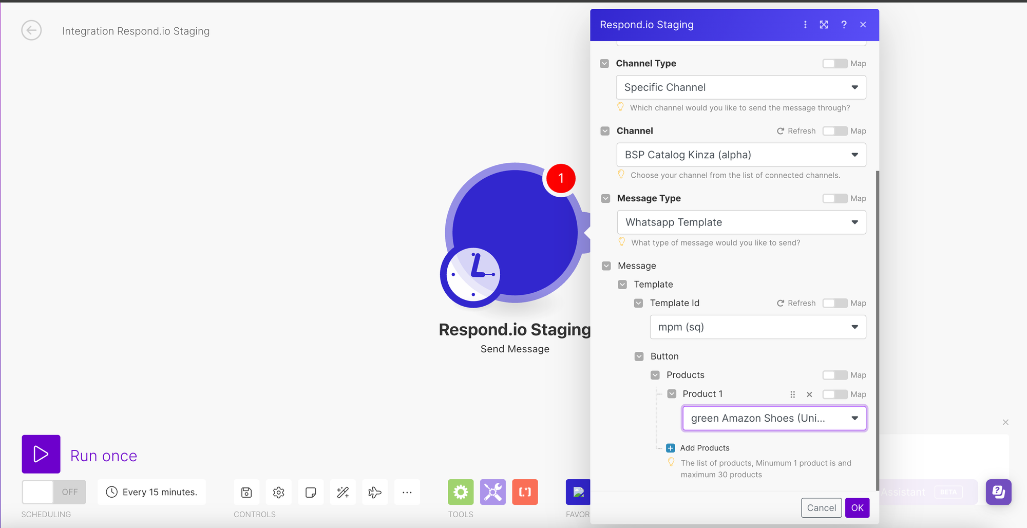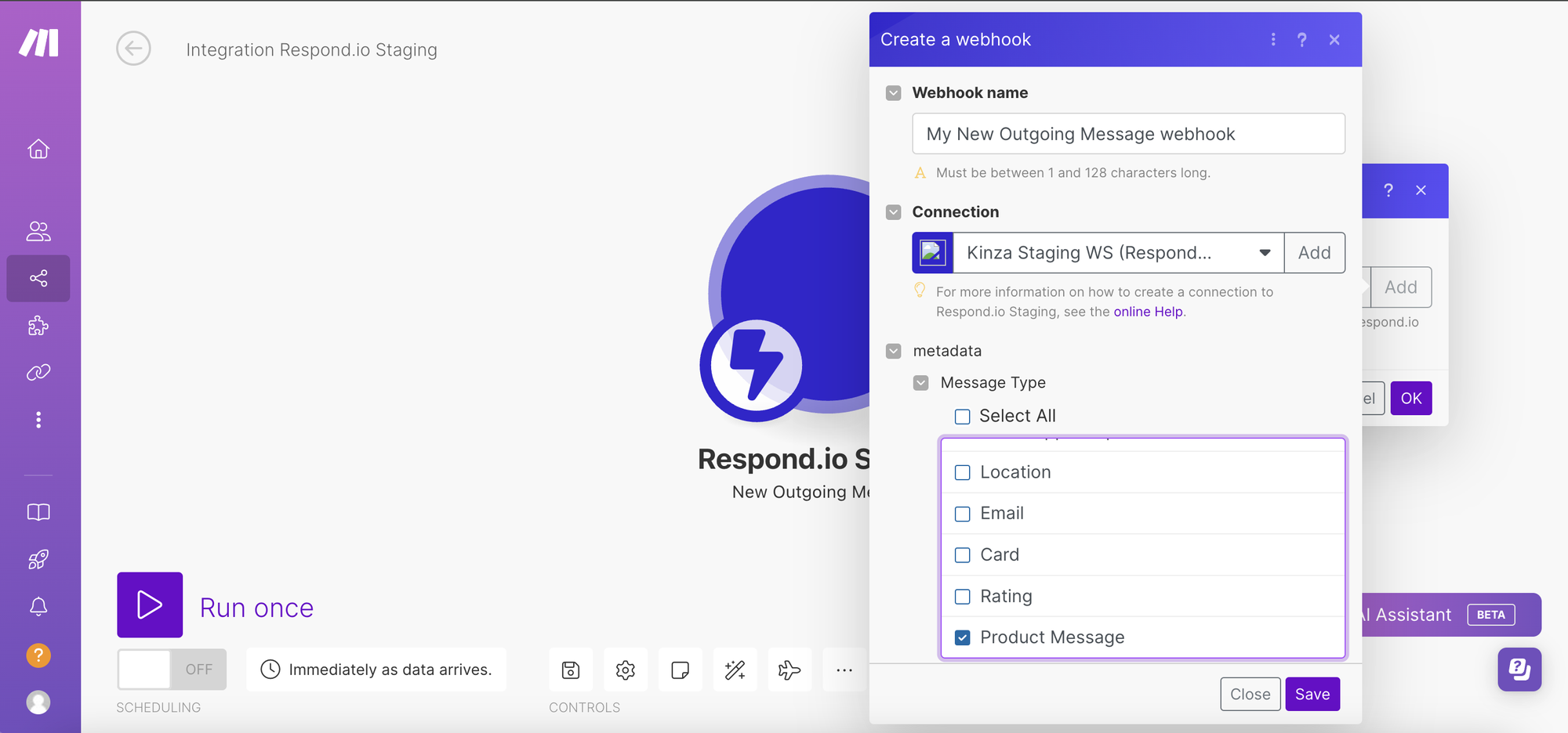 Anda dapat menggunakan Pesan Produk sebagai webhook di respond.io, Zapier, dan Make.