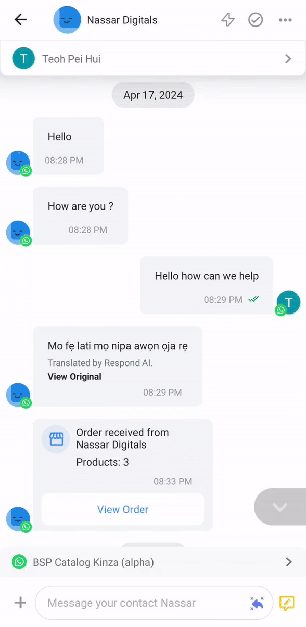Saat pelanggan Anda membuat pesanan melalui katalog, Anda akan menerima pesan masuk dan dapat melihat pesanannya.
