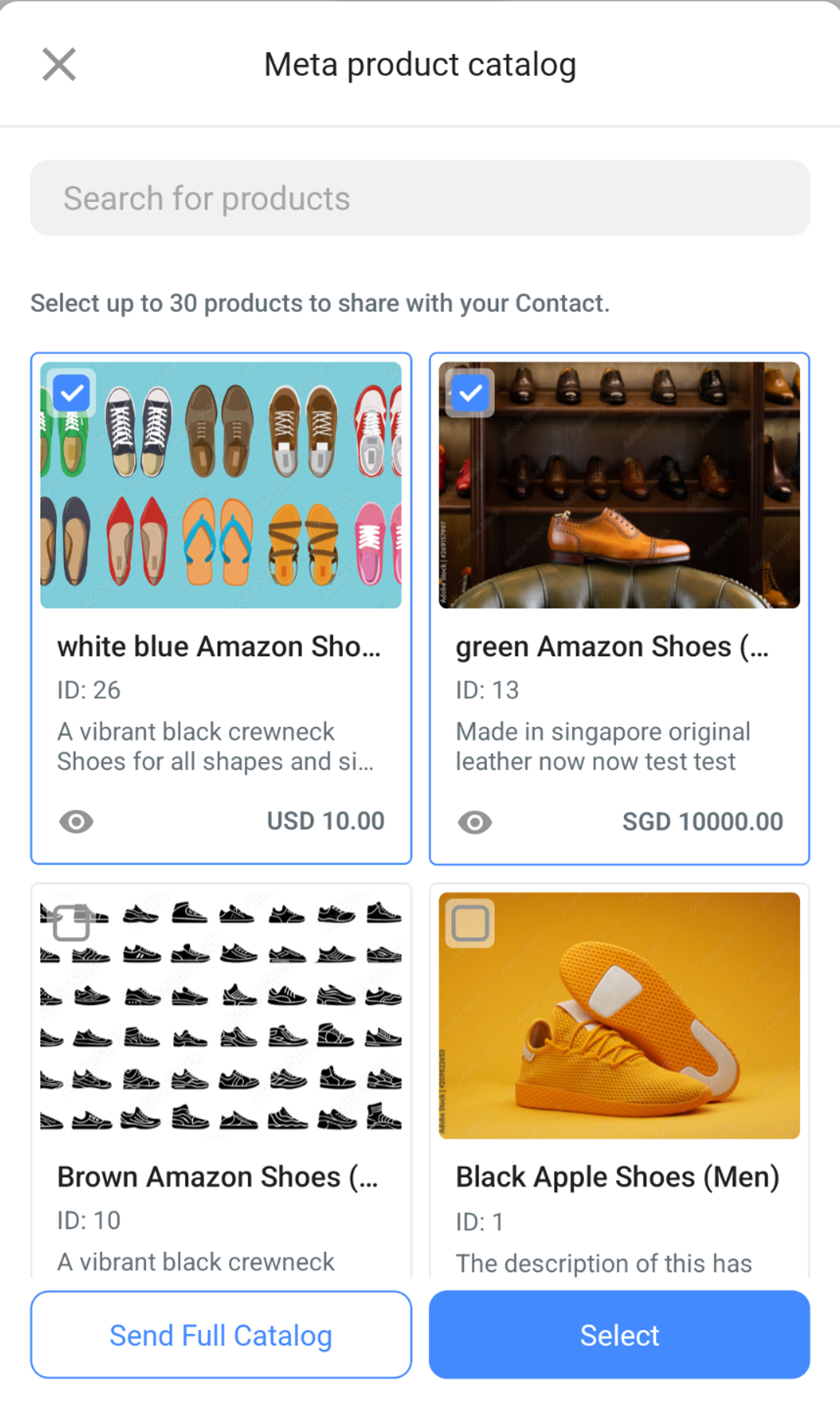 Langkah 1: Klik ikon Meta Product Catalog > pilih produk yang Anda inginkan atau klik Kirim Katalog Lengkap