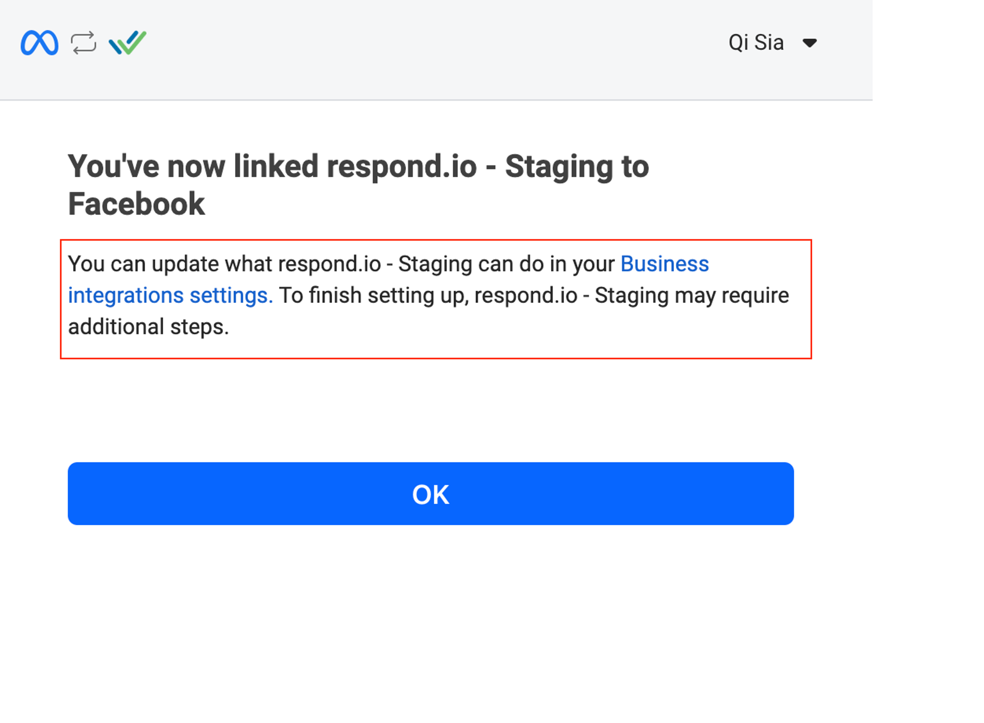 Buka pengaturan Integrasi Bisnis