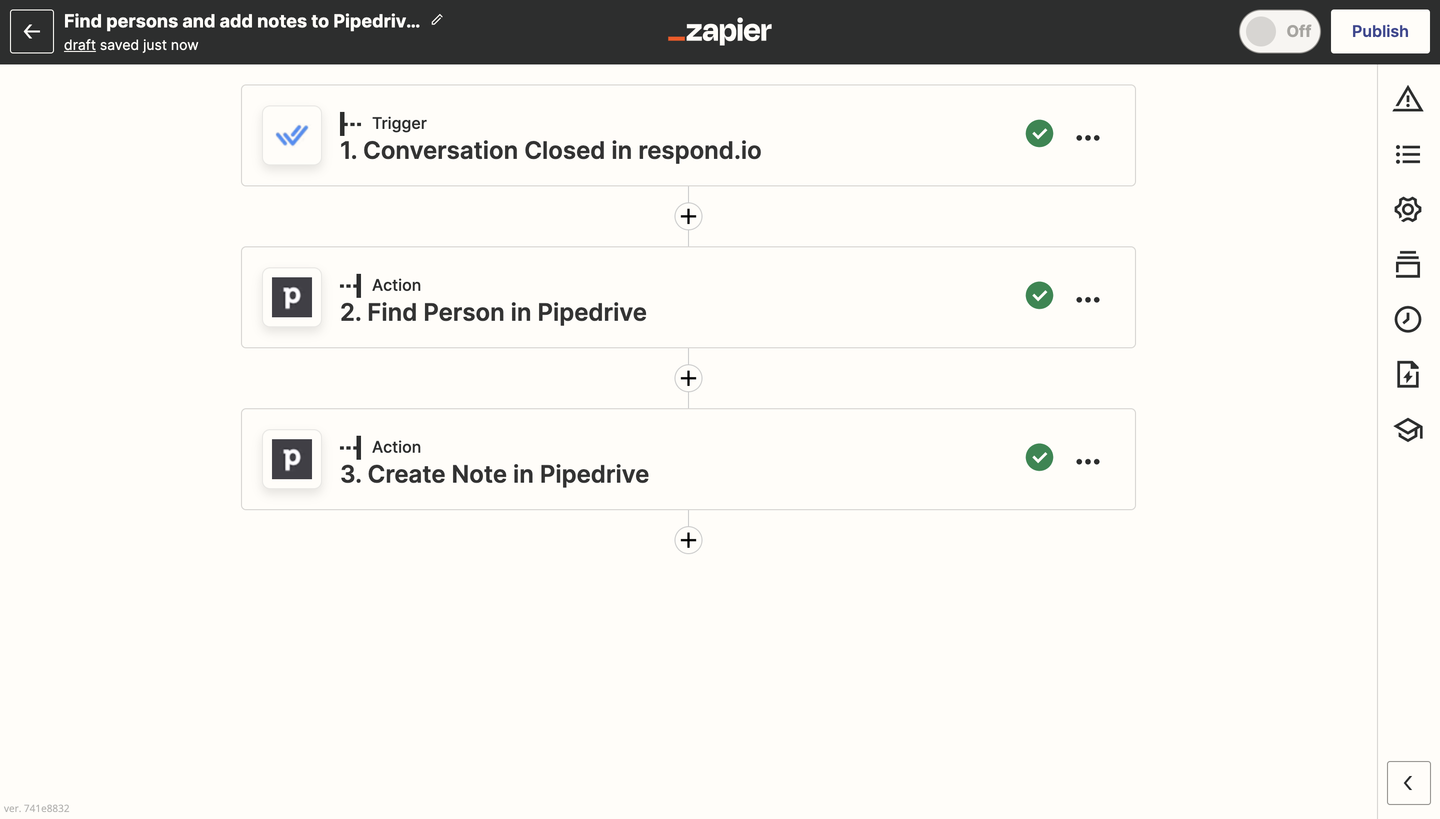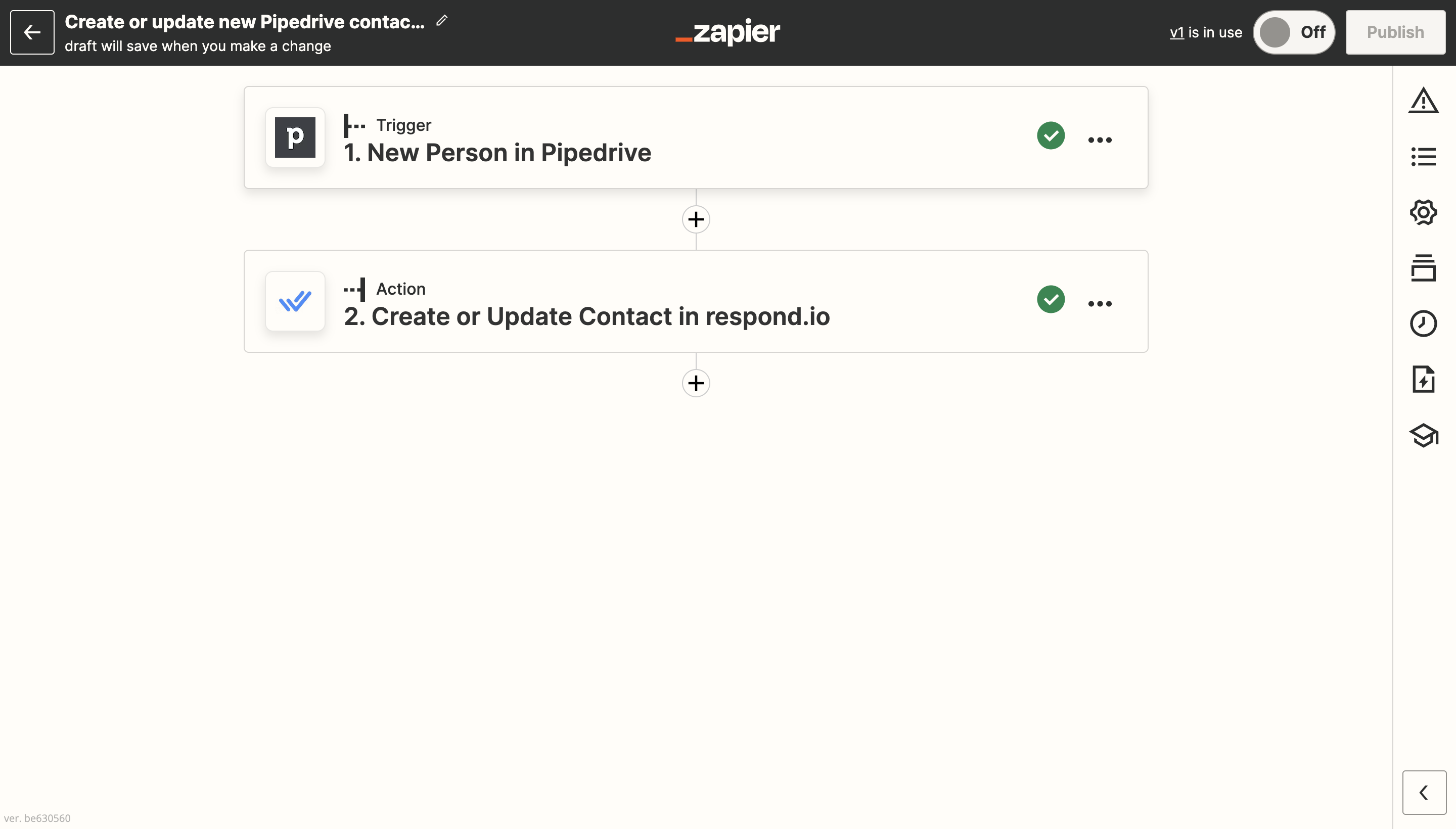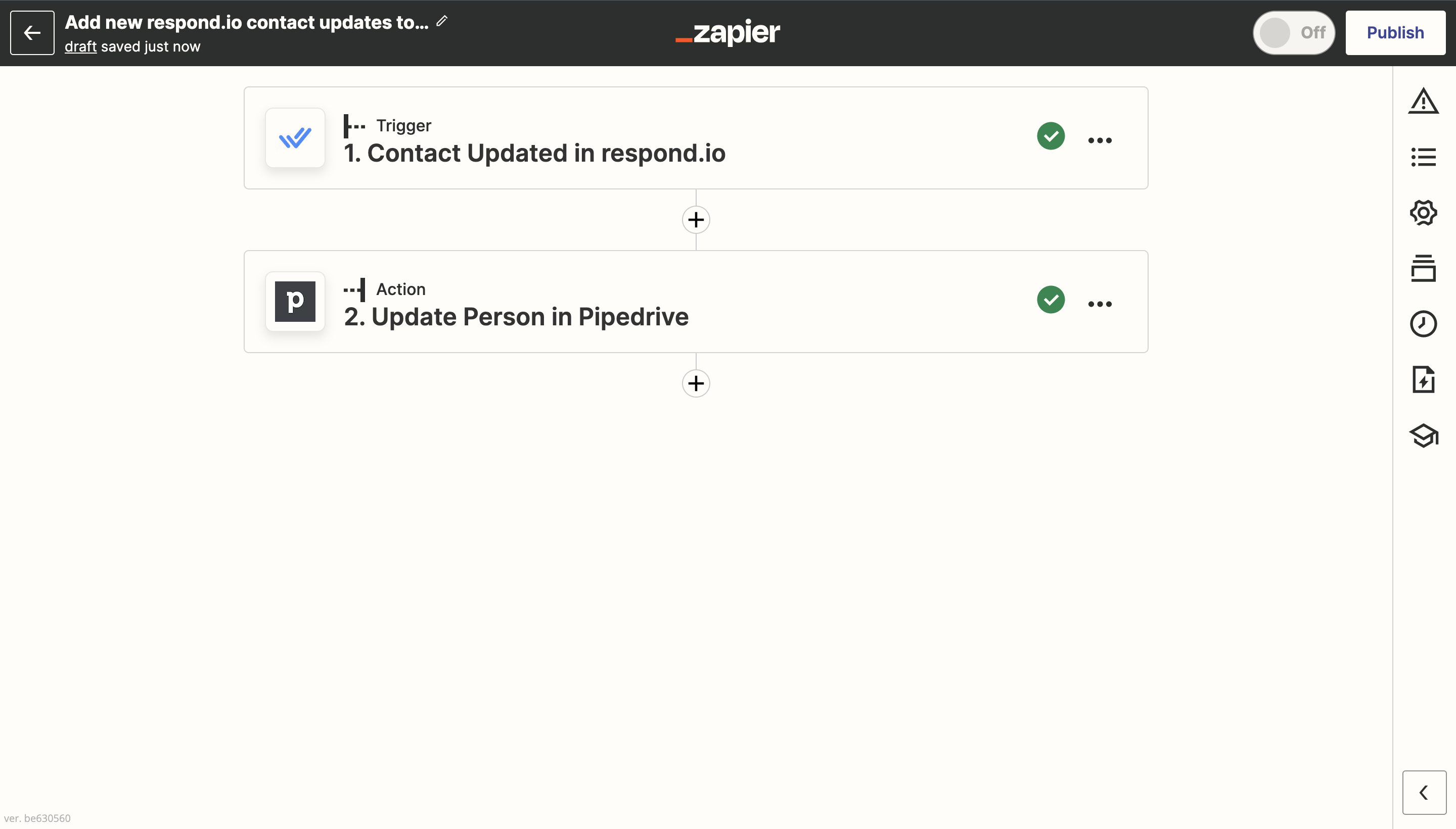Non preoccuparti di aggiornare manualmente le informazioni di contatto di respond.io nel tuo account Pipedrive, perché questa integrazione si occupa di farlo per te. Ogni volta che un campo selezionato per un contatto respond.io viene aggiornato, Zapier aggiorna automaticamente i campi di quella persona in Pipedrive.