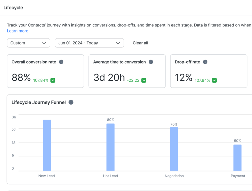 Dai priorità ai lead con intenzioni elevate, progetta percorsi cliente per ogni fase del ciclo di vita o identifica i punti di abbandono più comuni tramite analisi.