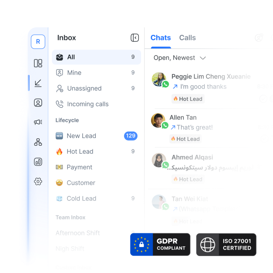 Wati’s inbox is limited to WhatsApp and Instagram and does not support calls. Respond.io unifies VoIP, email, WhatsApp, TikTok, Facebook Messenger, Instagram and more.