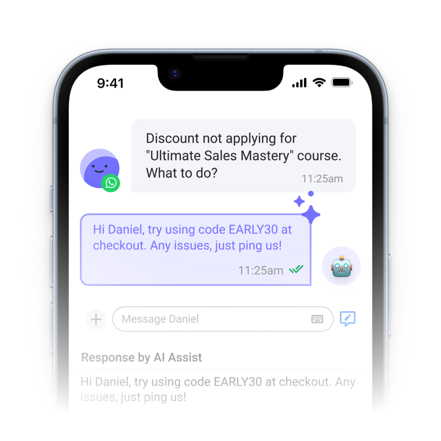 Collaborate across chat, email and WhatsApp Business Calling in one shared inbox to handle conversations faster.
