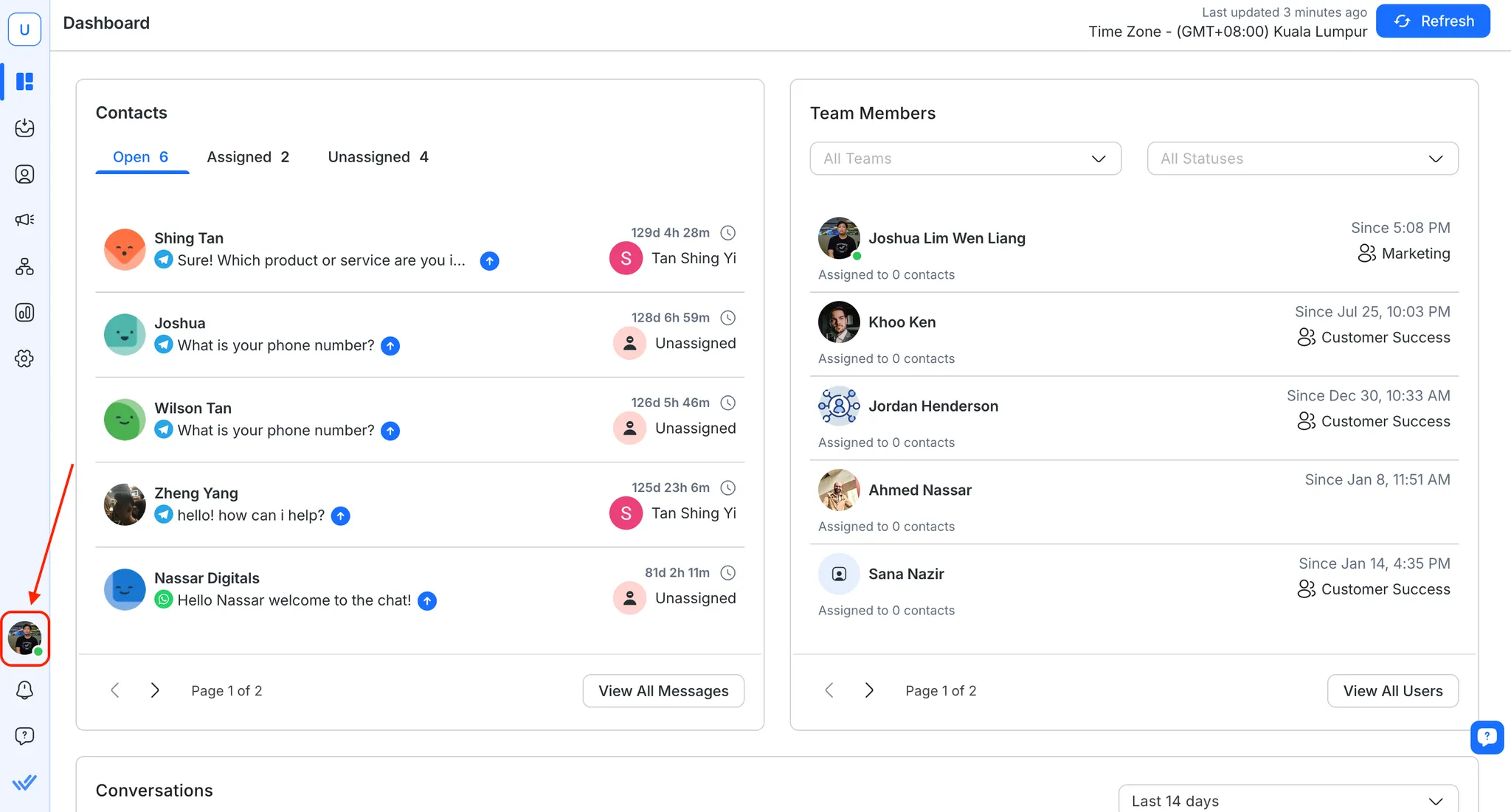 Há uma configuração na atribuição automática de contatos que lhe permite atribuir novos contatos apenas a usuários online.