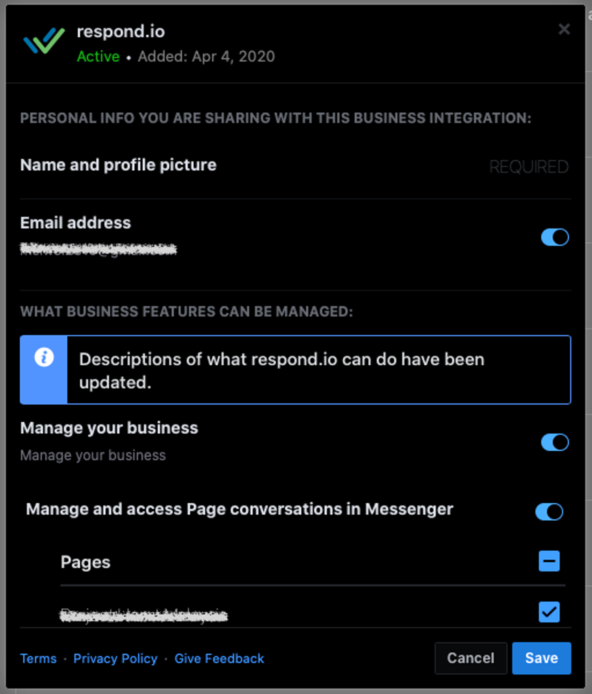 Разрешения на платформе respond.io могут быть устаревшими при изменении пароля к Facebook.