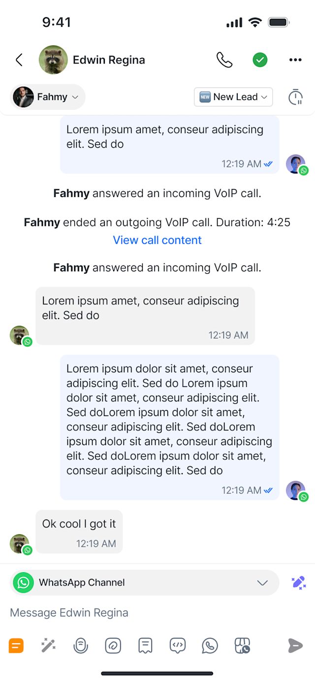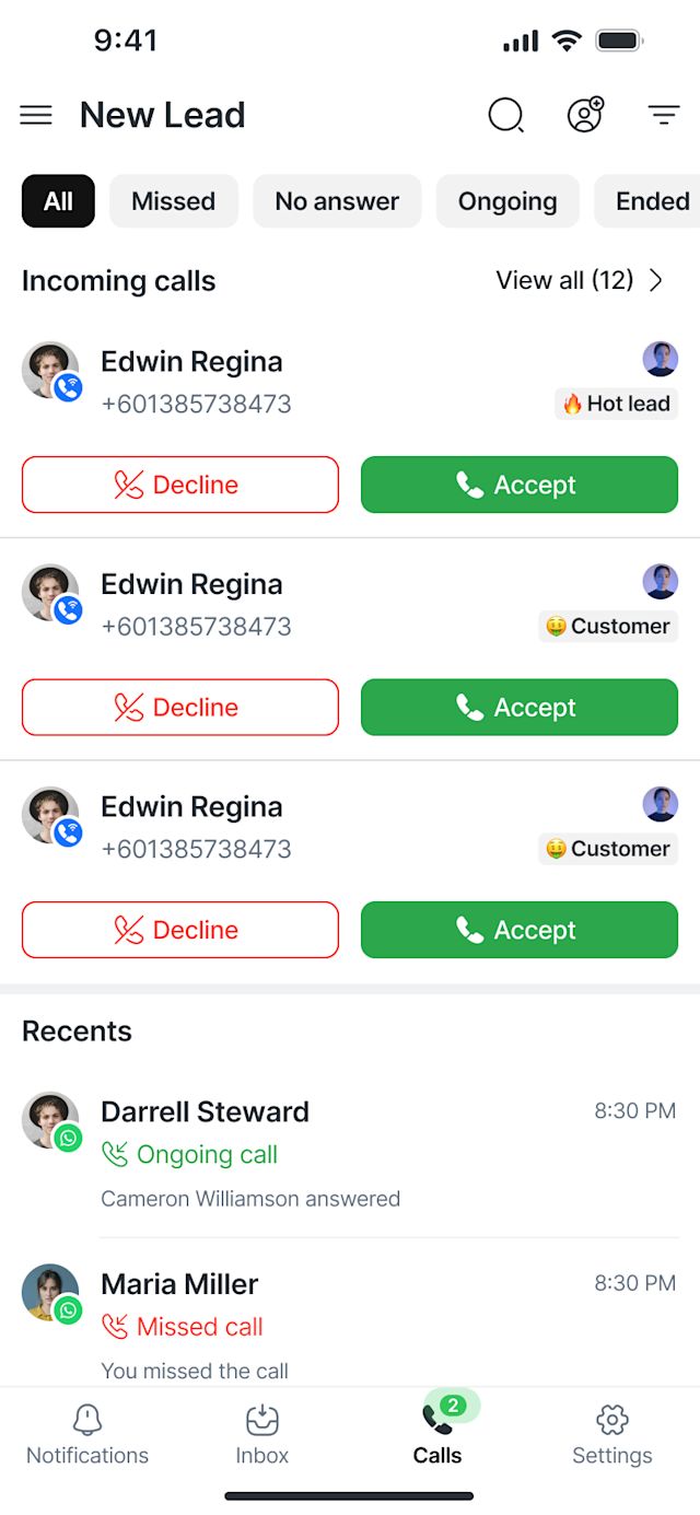 Оставайтесь на связи со своими клиентами, даже когда вы в пути. Мобильное приложение Respond.io теперь позволяет вам просматривать, управлять и выполнять действия во время вызовов VoIP и WhatsApp — а также видеть и управлять вашими последними вызовами, как в веб-приложении.