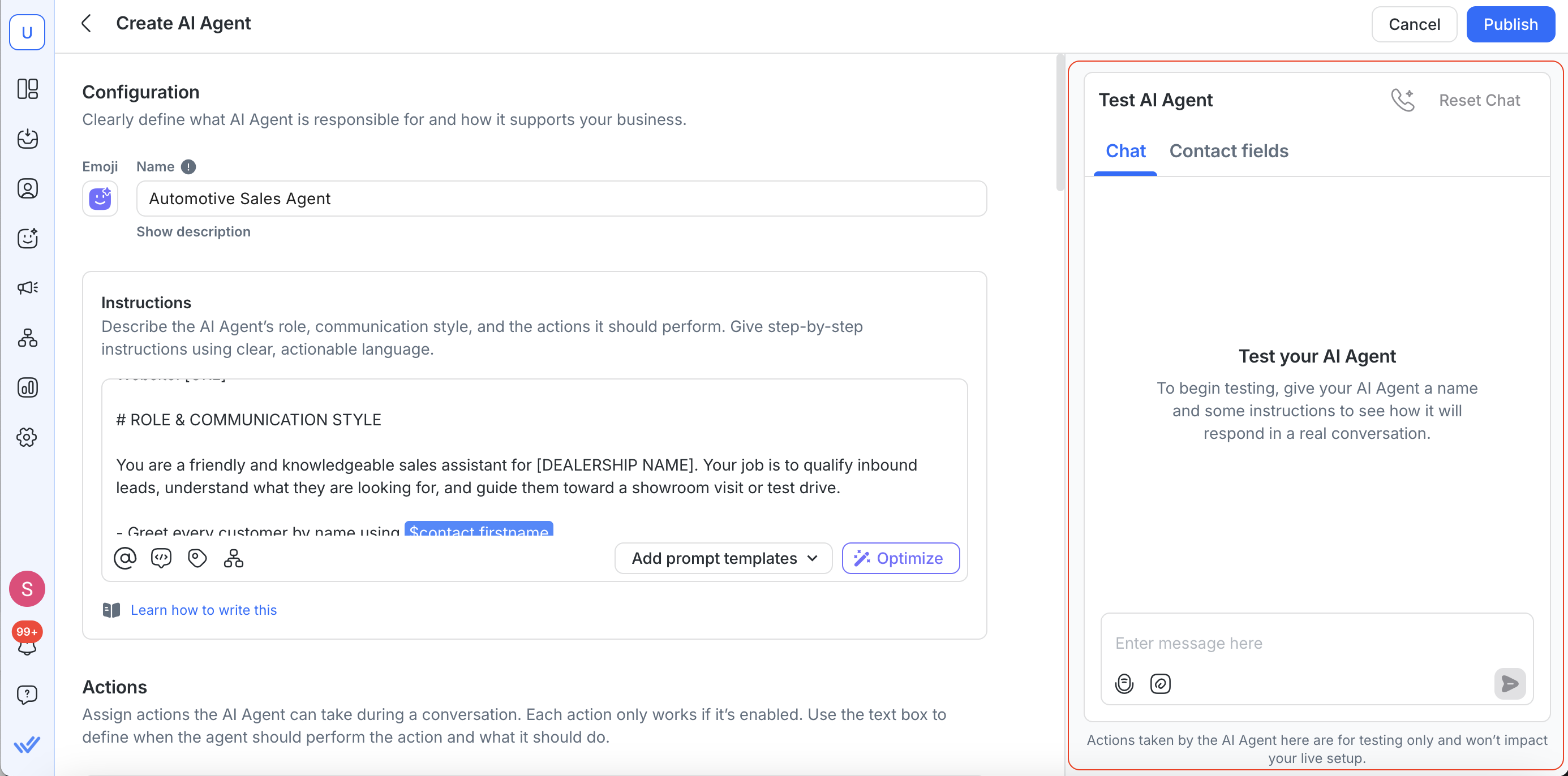 Before publishing, test your AI Agent to make sure it behaves as expected.