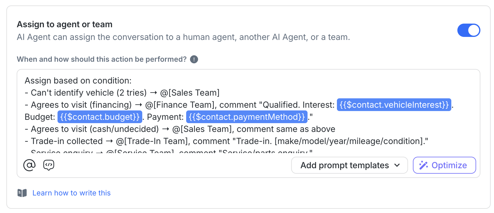 AI Agent assigns to Sales Team without resistance