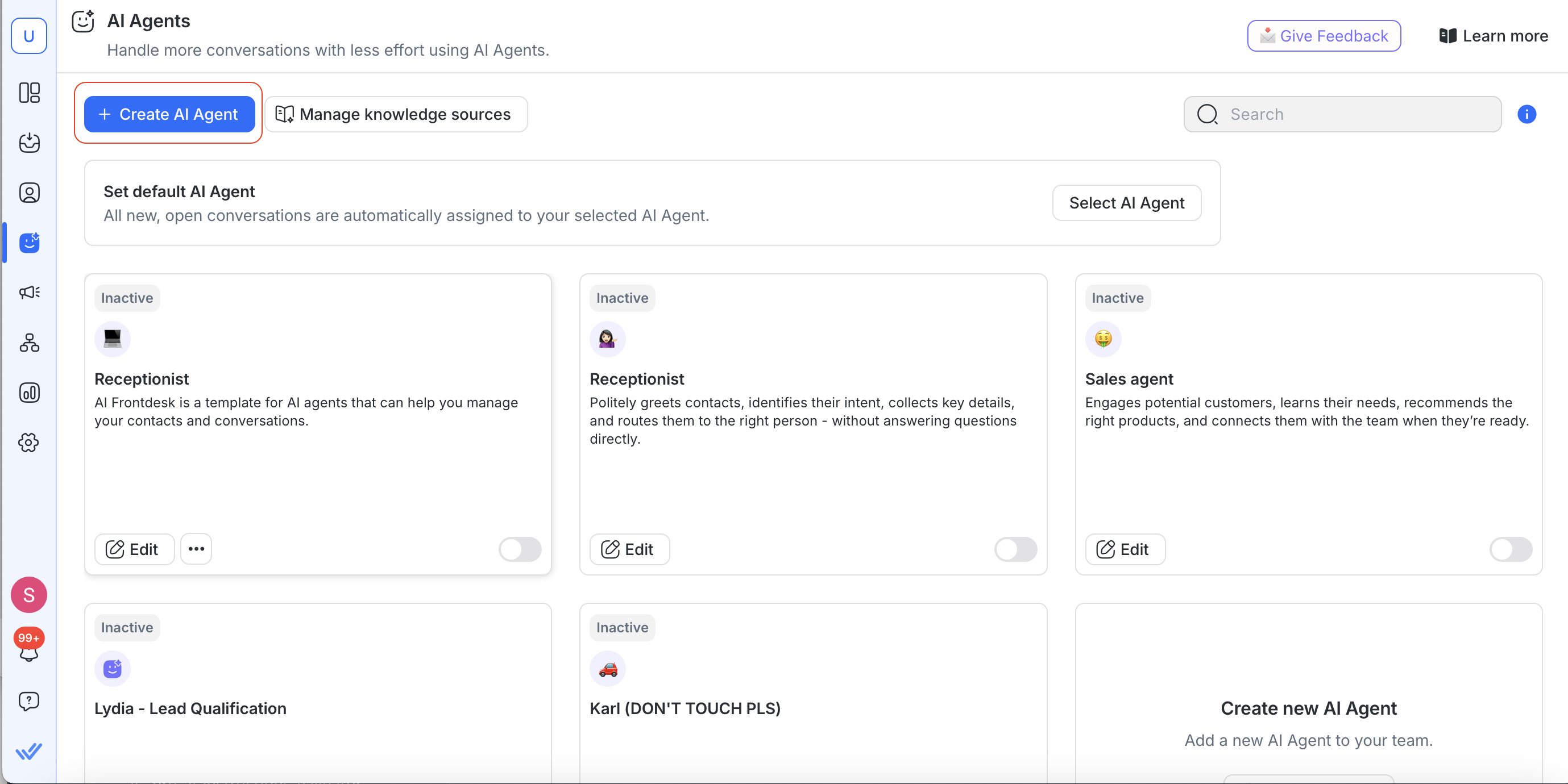 You can also create multiple AI Agents for different use cases — for example, one for sales lead qualification and another for service bookings.