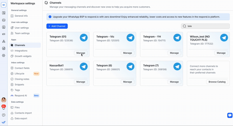觀看下面的視頻,了解如何將您現有的 Telegram 帳戶連接到 respond.io 的分步指南。