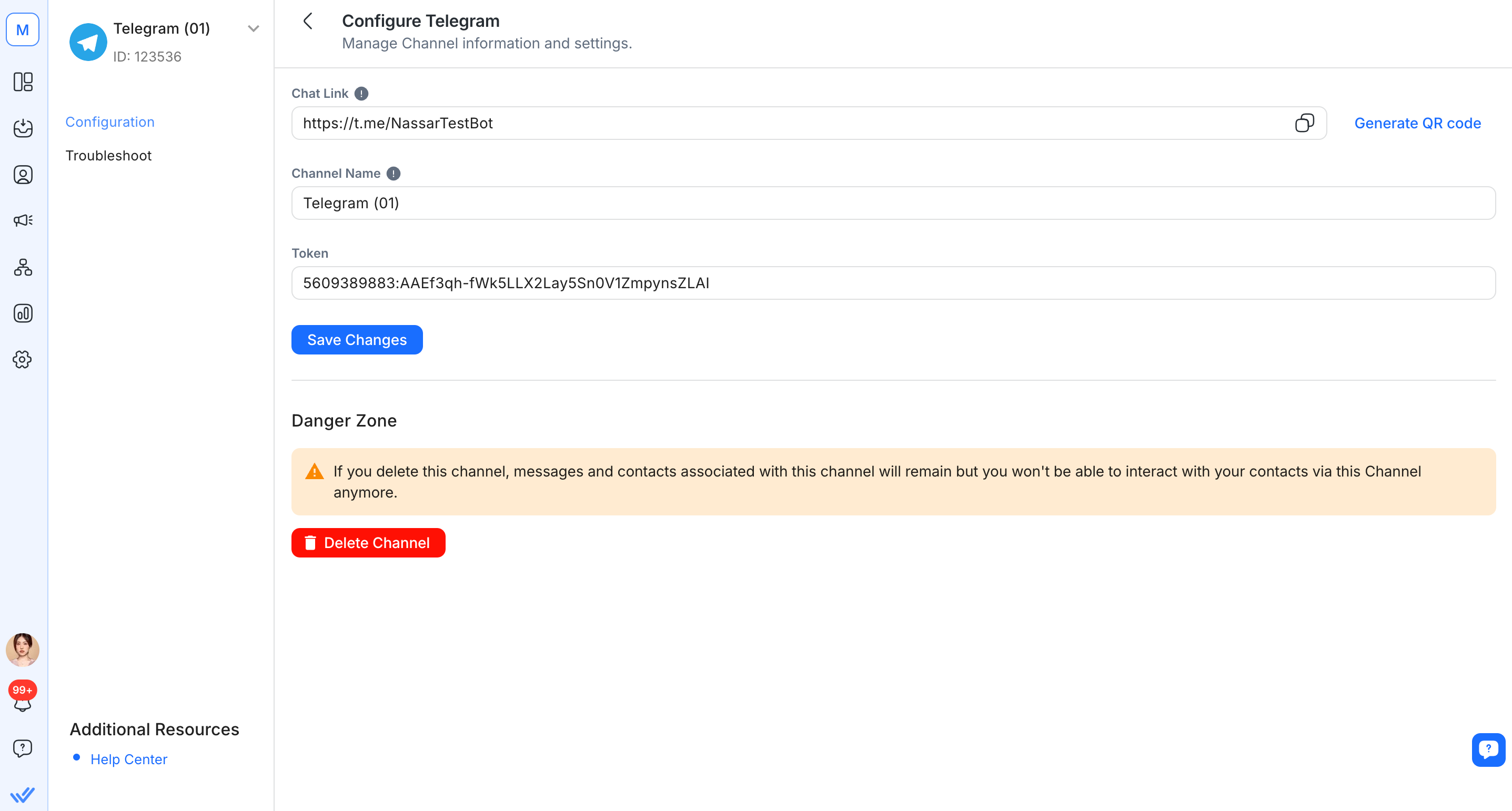 可以為 Telegram 頻道配置一個唯一的頻道名稱。 該名稱將在內部用於識別帳戶。