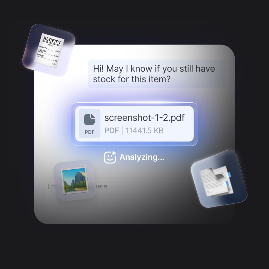 是。 AI 代理可以处理图像和常见文件类型,如 PDF。 它可以从照片中识别产品,从发票中读取订单号,或者解读来自屏幕截图的错误信息。 您还可以通过上传 PDF、图像或文档测试它在设置期间如何处理这些文件,以验证行为,确保上线时表现良好。