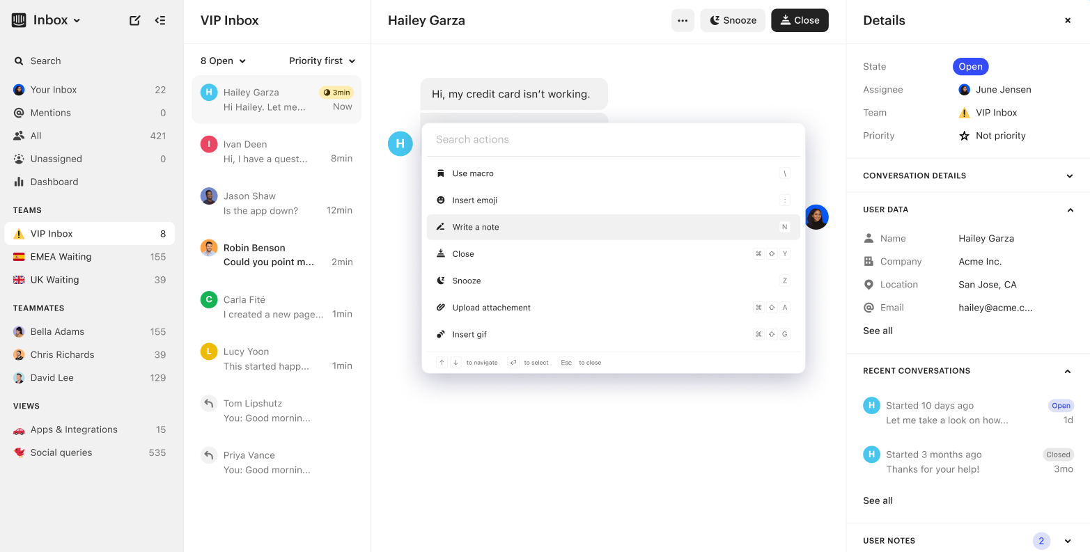 更快的问题解决:无需切换工具或在不同地点查找上下文,团队可更快响应、解决问题并完成销售。