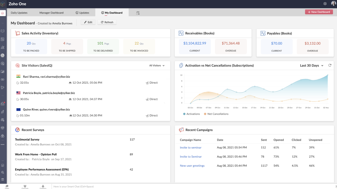 Zoho CRM: 适合希望在不增加企业复杂度下获得高度自定义能力的成长型团队。