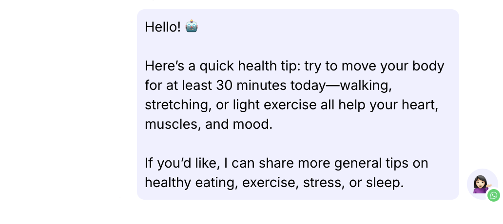 WhatsApp 聊天机器人正好位于这一交汇点。 它会在患者日常使用的渠道上自动化例行对话,让医生和护士专注于诊疗而非行政事务。