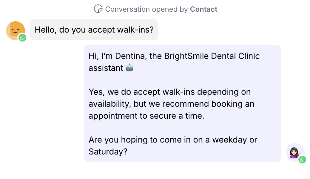 实际上,许多医疗服务提供者从混合方法中受益:对常规、结构化的工作流(预约、常见问题、提醒)使用传统 chatbot,再叠加 AI 代理以获得灵活性。 不过,您也可以根据需求仅使用其中一种。