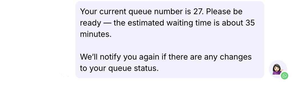 自动化预约预订、提醒与跟进是减少患者爽约最有效的方法,爽约可能会 给您的业务造成损失。 将 WhatsApp chatbot 与健康信息系统集成,可实现实时排程与即时双向提醒,患者可一键确认或改期。 例如: